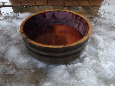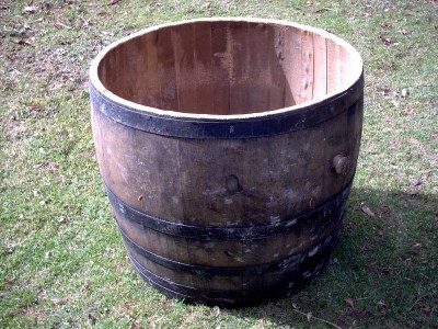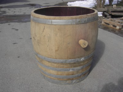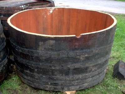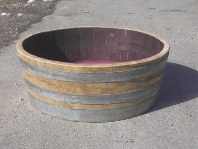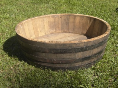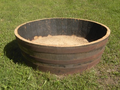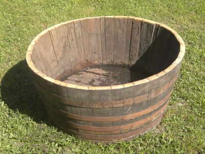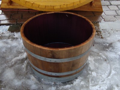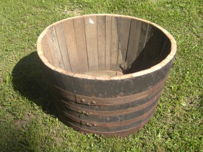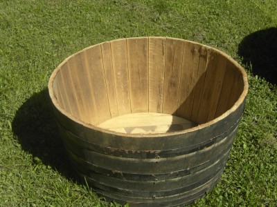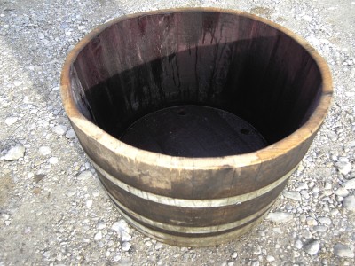 halbes Holzfass Fassabschnitt Pflanzschale 75 Liter_160 halbes Holzfass Miniteich Pflanztrog 150 Liter